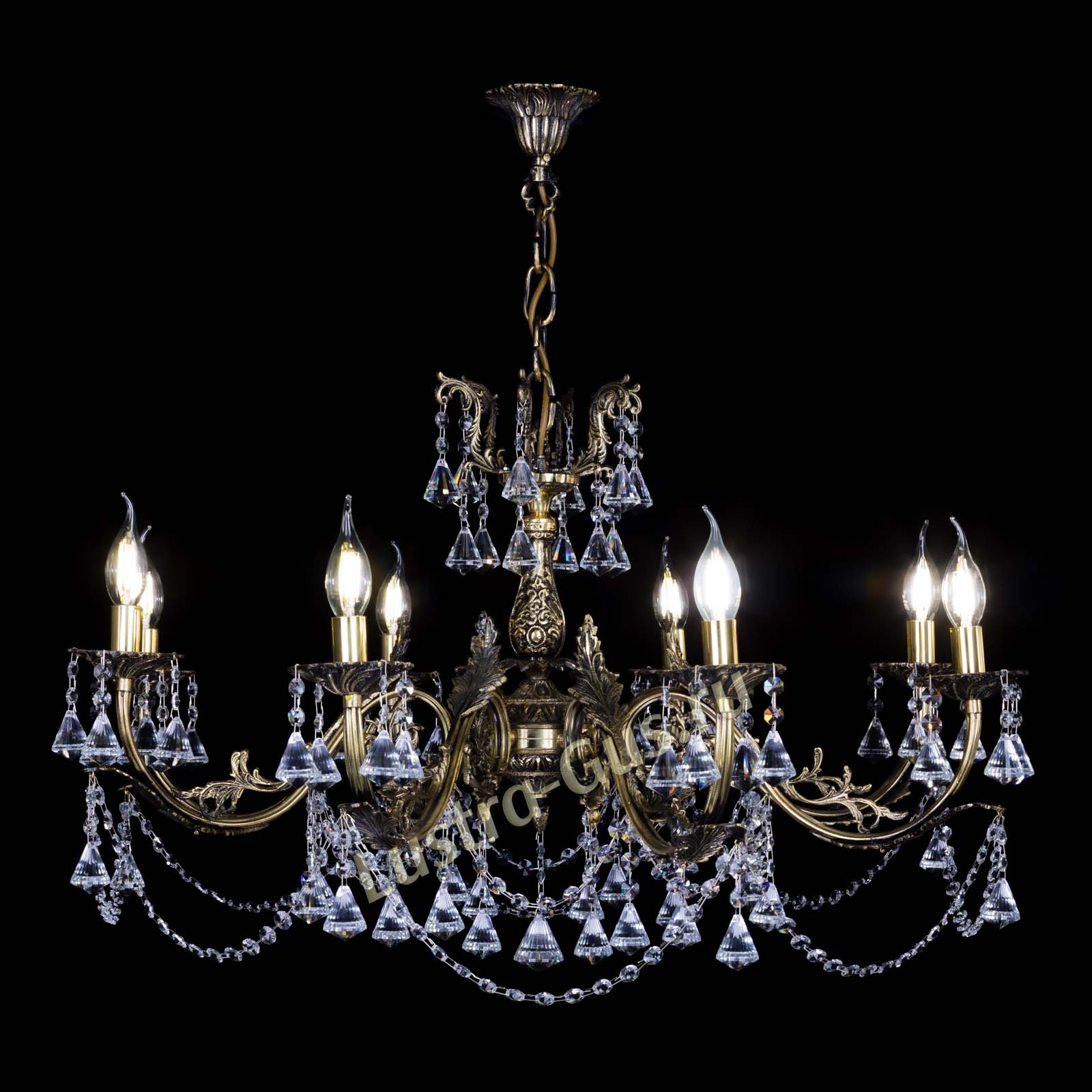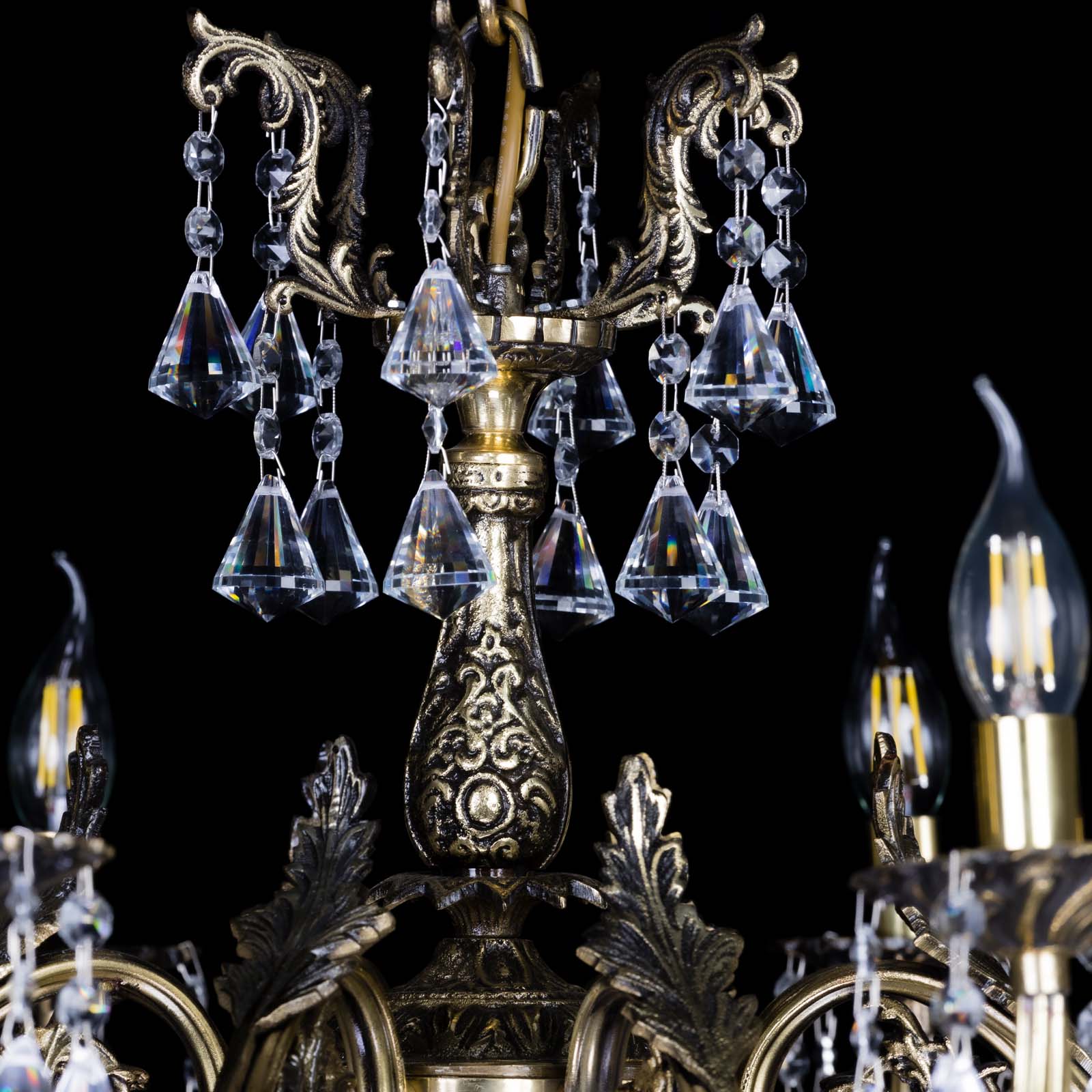 Бронзовая люстра Кассандра №8 удлиненная с конусами в Химках