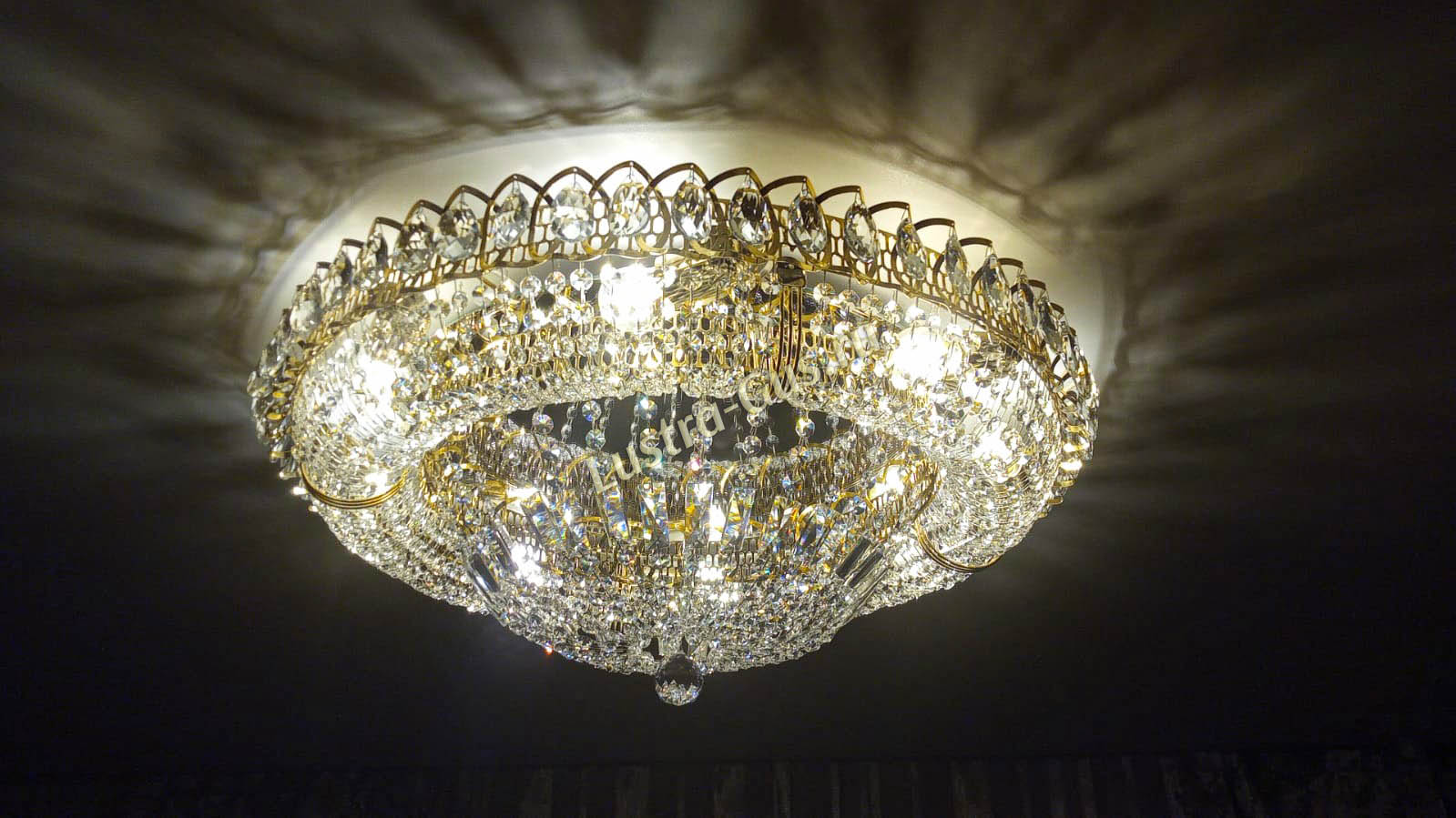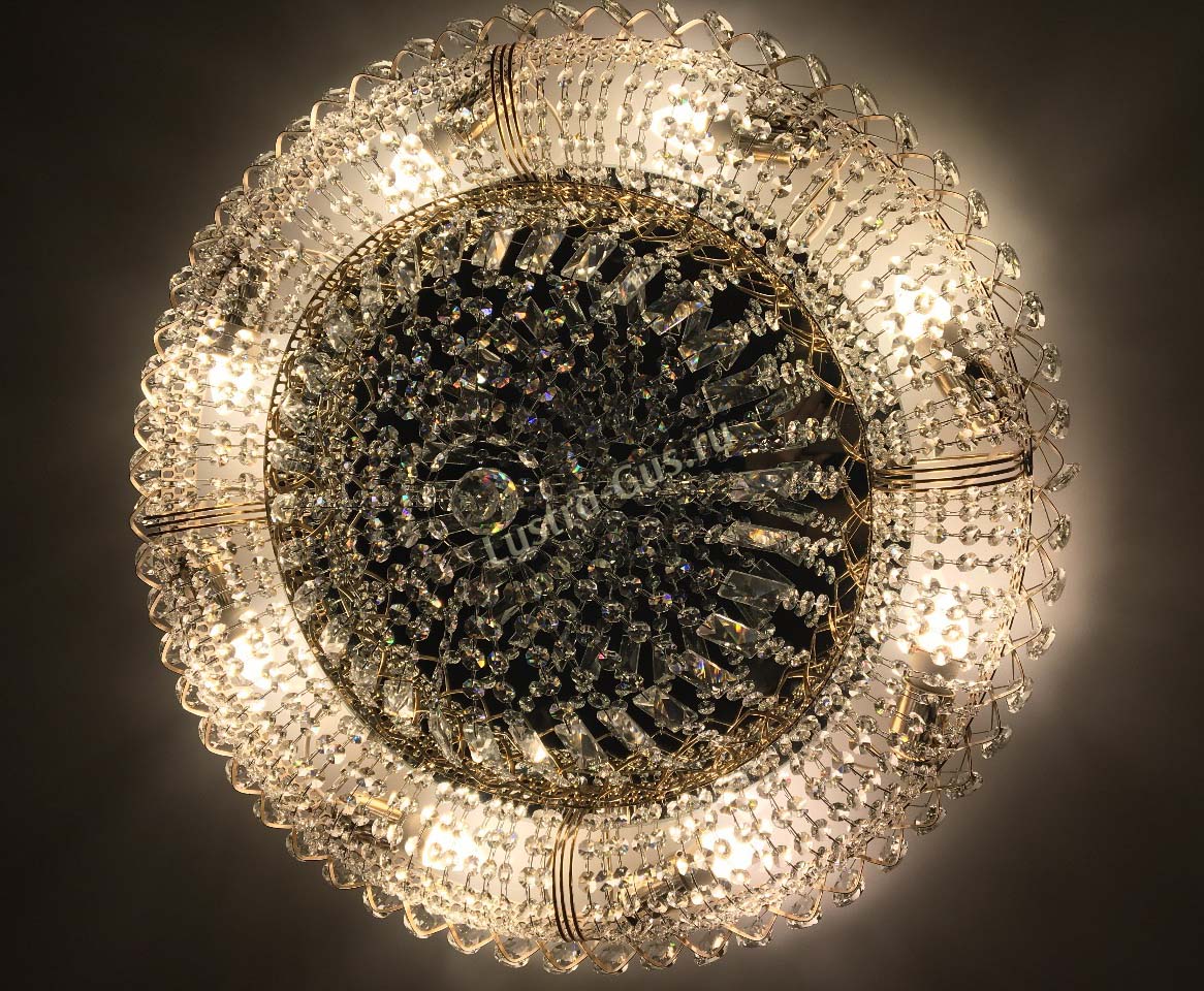 Добрый день! Купили потолочную люстру в мае. Очень довольны, доставка отличная, очень хорошо упакована, красивая и воздушная, размер 70см, в комнате 18кв отлично смотрится. ГУСЬ ХРУСТАЛЬ, СПАСИБО!!