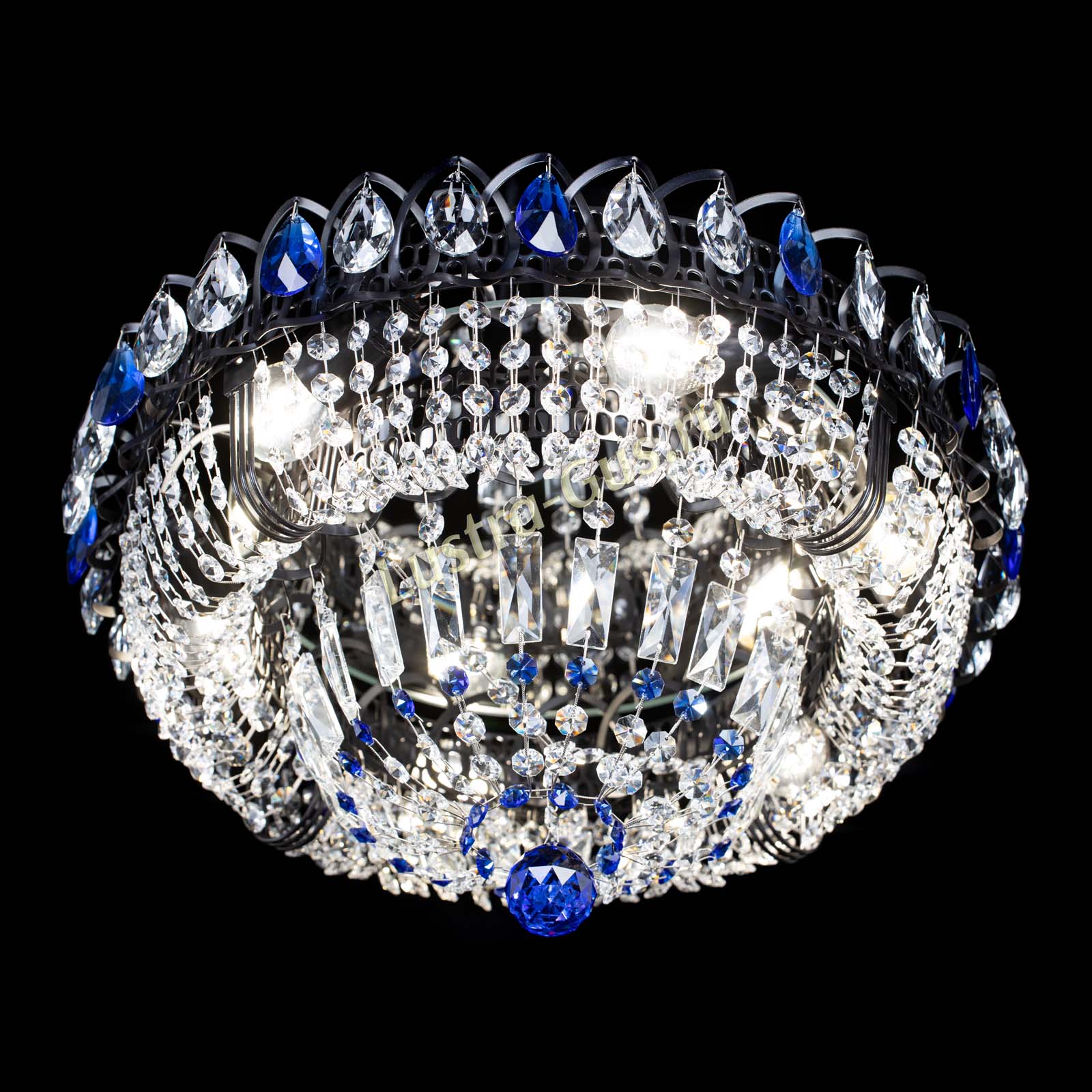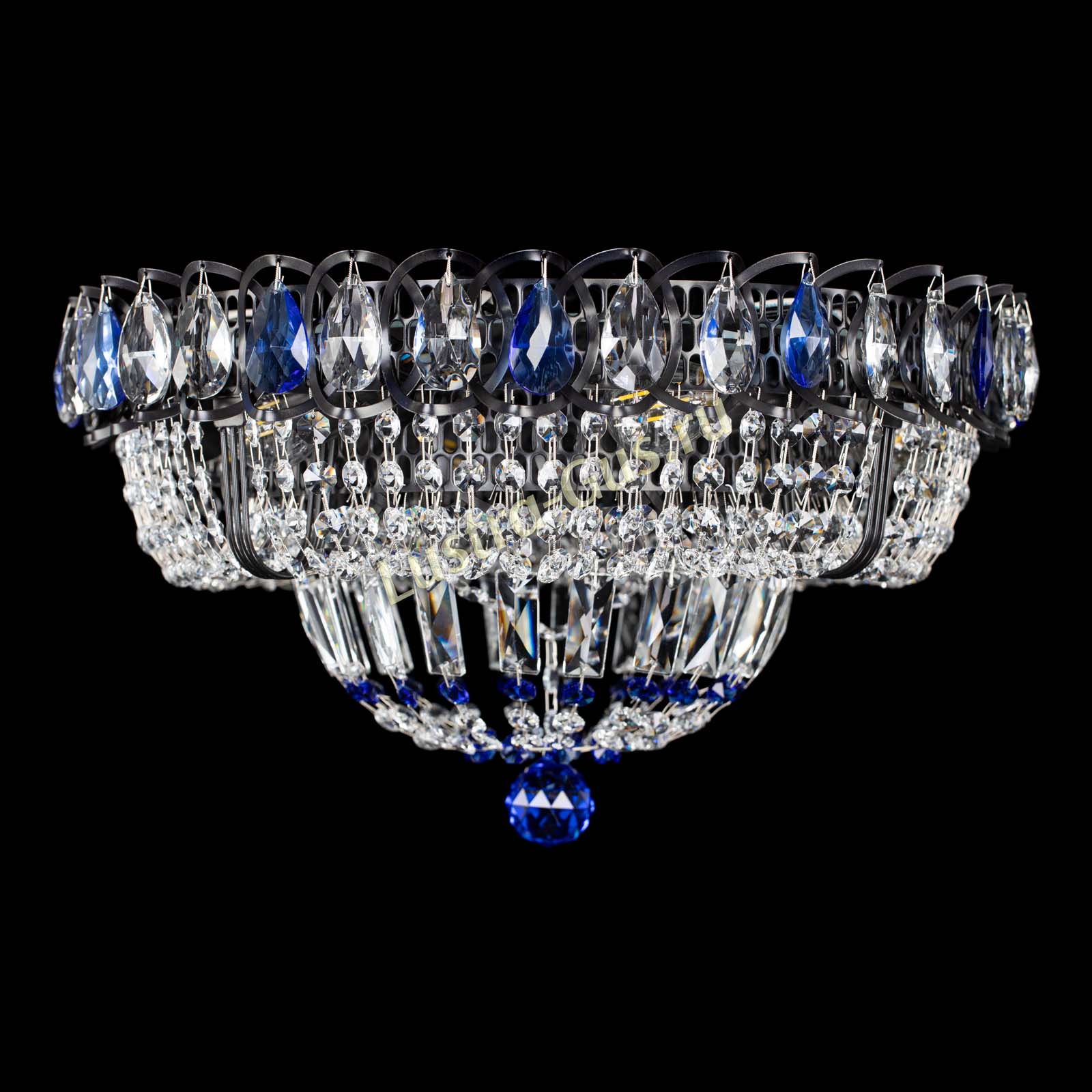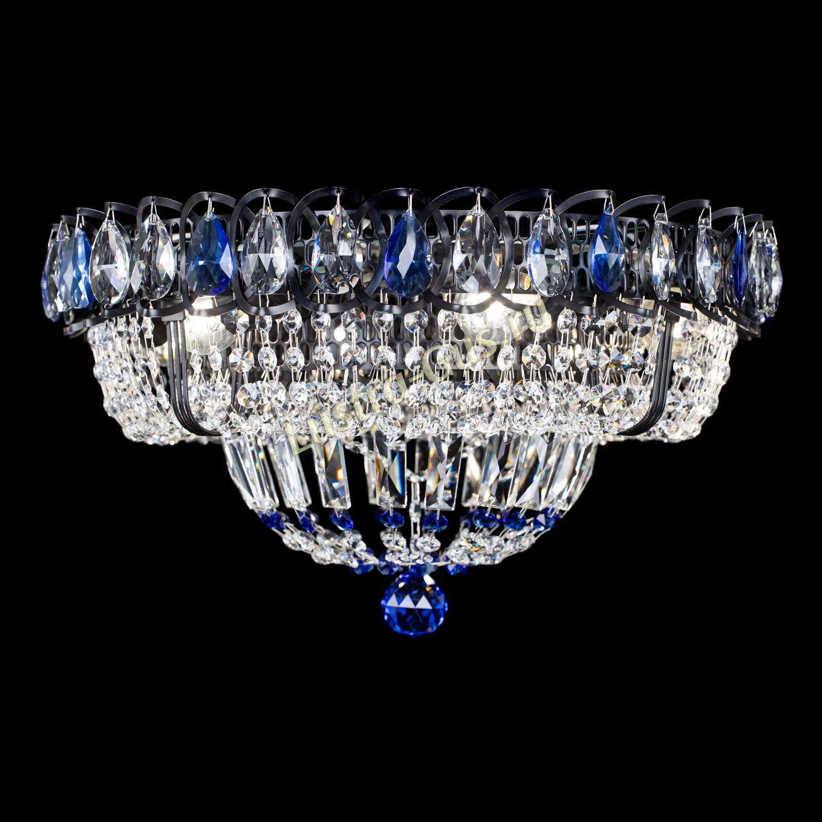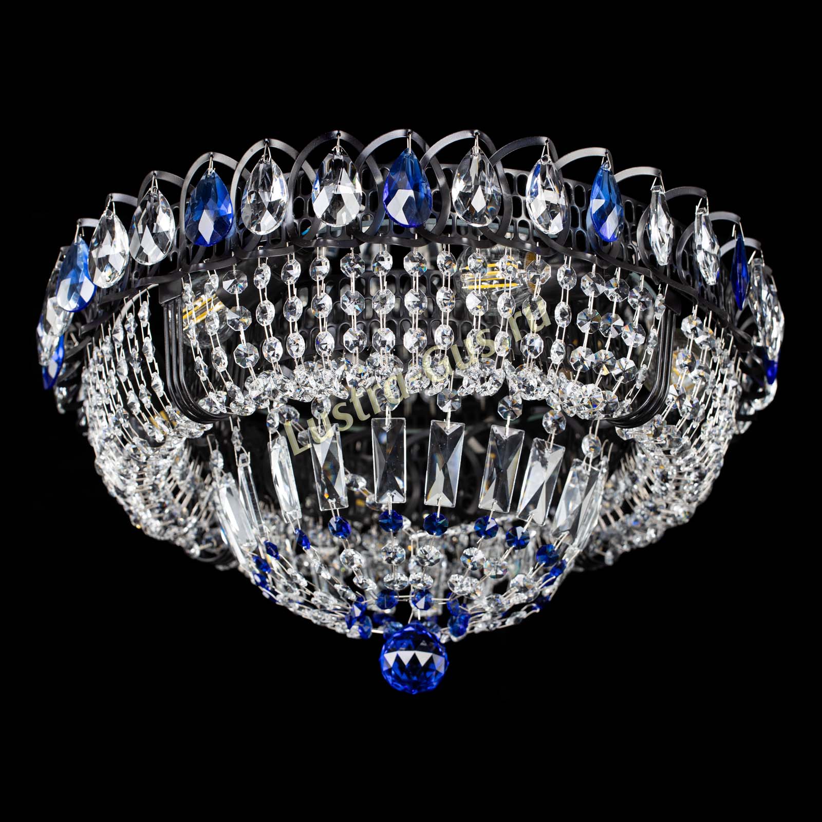Люстра Кольцо Классика Черная с синими подвесками в Химках